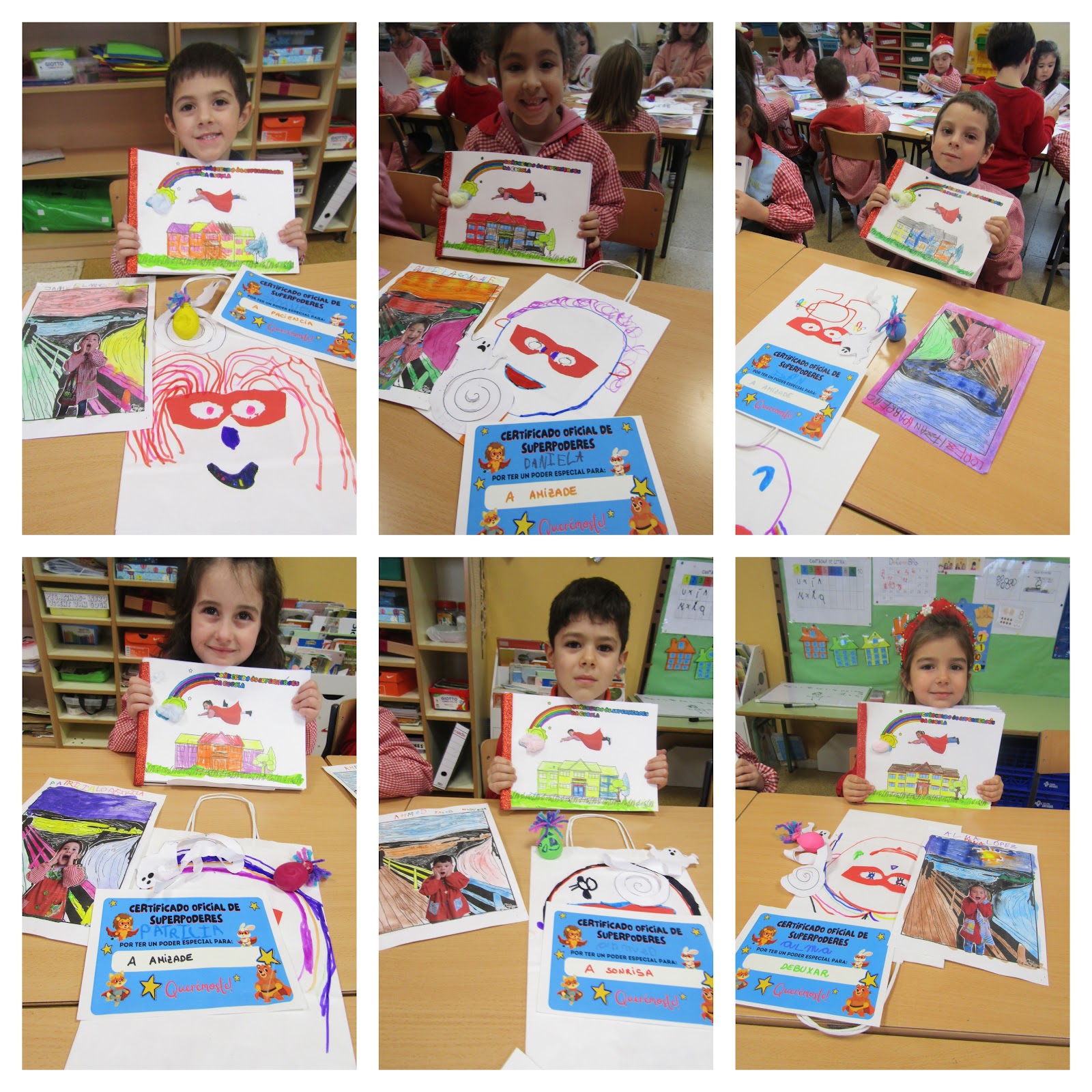 Pegámolos na bolsa e a decorar a nosa cara de super héroes.