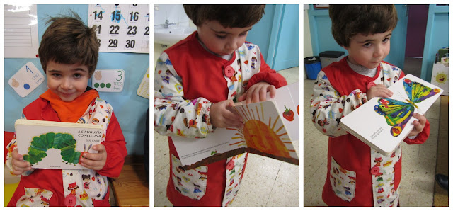 ARON: trouxonos un conto moi divertido, como unha eruguiña ao longo dunha semana comeu e se converteu nunha fermosa bolboreta! Gustounos moito.