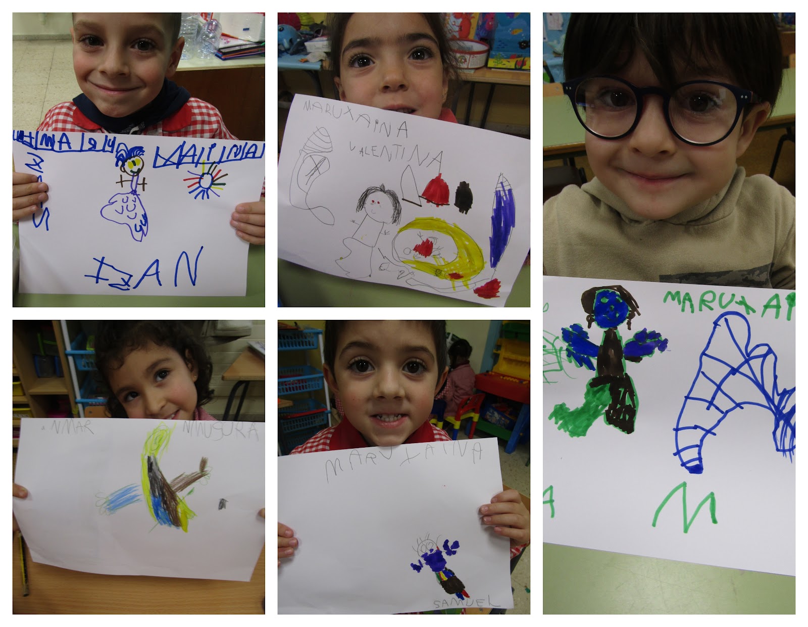 O conto de Thiago fálanos de compartir. Fixemos un pequeno debate despois do conto e debuxamos o protagonista: un oso.
