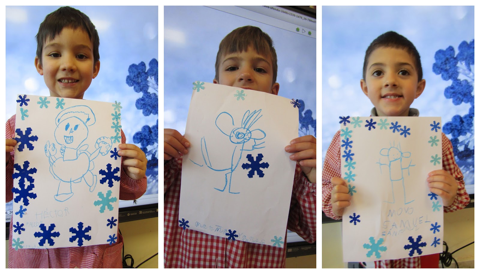 Artistada das nosas, fixemos un marco con copos de neve e despois debuxámonos.